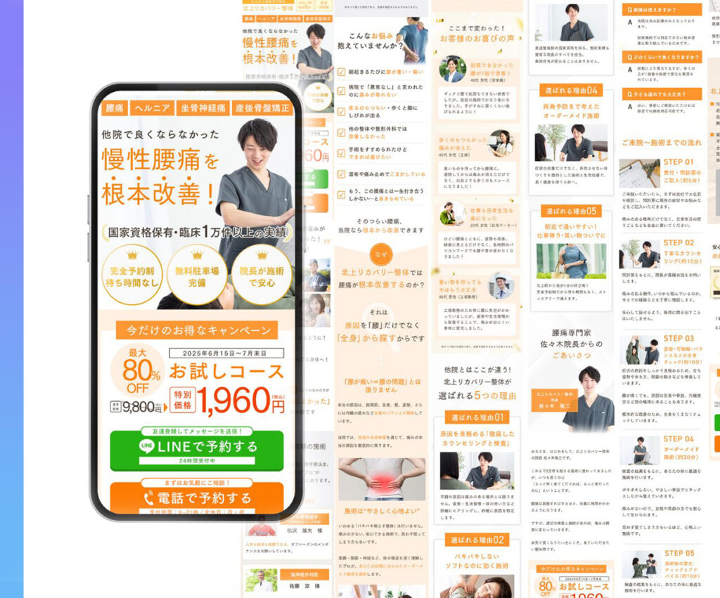 制作実績/LP 腰痛専門整体院 様 2025 10/30 制作実績 LP 担当範囲原稿作成、デザイン、コーディング 制作ツールPhotoshop 制作ポイント明るいコーポレートカラーのオレンジと信頼性のあるデザインに。はじめての方も安心して受診できるクリーンな印象を心がけました。 制作実績 LP よかったらシェアしてね! URLをコピーしました! URLをコピーしました! 02 この記事を書いた人 hyry12926 関連記事 03 2025年10月30日
